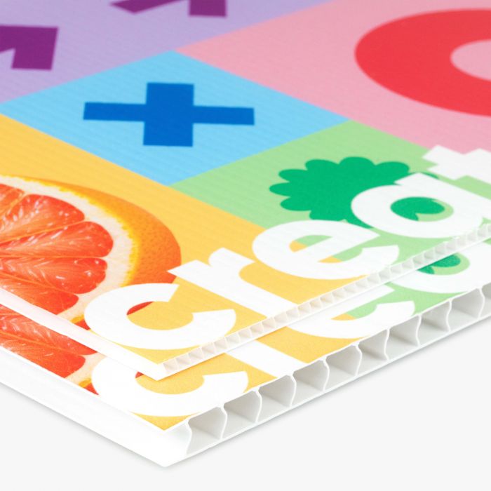 Kanaalplaat is een lichtgewicht en slagvast kunststof paneel met een holle kanaalstructuur, waardoor het sterk én gemakkelijk te verwerken is. Het materiaal is uitstekend geschikt voor buitengebruik en full-color bedrukking, wat het ideaal maakt voor reclameborden, bouwborden en tijdelijke buitencommunicatie. De combinatie van stevigheid, weerbestendigheid en scherpe printresultaten zorgt ervoor dat je boodschap zichtbaar blijft, zelfs bij intensief gebruik buiten.