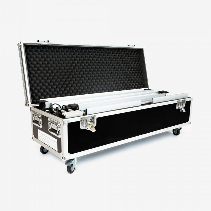 Montage is eenvoudig en efficiënt. Elke wand wordt geleverd met een stevige koffer op wielen, waardoor transport en opslag op locatie makkelijk zijn. Het frame is solide, en door de LED’s is de beurswand duurzaam inzetbaar.
